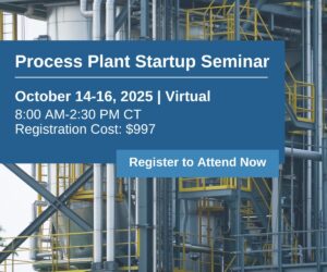 Our world-renowned Process Plant Startup Seminar has helped hundreds of projects come on stream ahead of schedule and below budget. Join us for our next seminar, happening virtually: